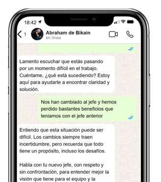 Sin tener que instalarte nada, siemplemente escribiendo por WhatsApp.
